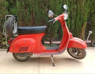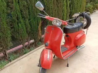 Vespa 75 Primavera con matrícula V-BB. Un clásico para disfrutar de la carretera. - Color rojo vibrante. - Asiento negro. - Rueda de repuesto incluida.