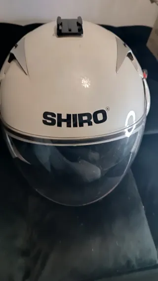 Casco de moto SHIRO de color blanco con visor. - Diseño deportivo. - 2 Visores transparente y negro - Soporte para cámara en la parte superior. TallaXS
