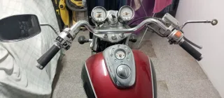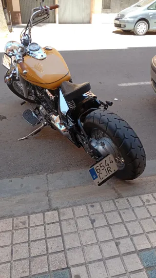 Yamaha Dragstar 650 customizada estilo bobber. Una moto con un diseño único y llamativo. - Depósito de combustible gris vinculado. - Asiento negro. - Manillar cromado. - Ruedas de radios. Dispongo de todas las piezas originales. No homologada a bobber. 40.040 kms. ITV hasta 2027
