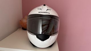 Casco modular Schuberth en acabado blanco brillante. Talla XS. Como nuevo - Diseño aerodinámico. - Visera amplia y transparente. - Ventilación superior. - Tiene un pequeño arañazo en la zona de la barbilla de rozarlo con una pared. El estado es impecable.