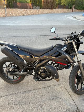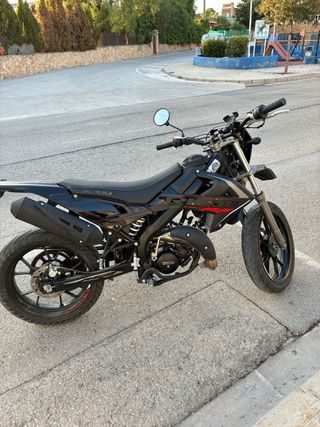 Moto de 49, con 13.000 km. Con 4 años de antigüedad, muy bien cuidada siempre ha dormido en garaje y itv acabada de pasar. Con un 70 airsal, tubo boca 50/70, carburador 21, corona y piños recien cambiados, acabada de salir del taller, retrovisor R negro y con todas las piezas de casa.