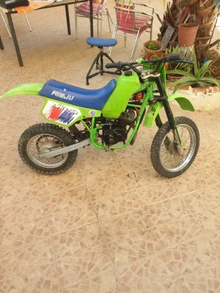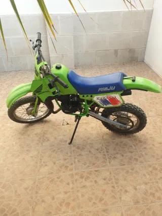 Minimoto Rieju Pony 50cc. - Diseño deportivo en verde y azul. - Ruedas todoterreno. - el motor gira - coleccionistas 1988 - para restaurar