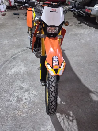 Moto Rieju RR estilo enduro, lista para la acción. - ITV recién pasada - Ruedas doradas y detalles en rojo. -Toda entera de casa y original -kit de pegatinas red bull -ruedas i cilindro con menos de 50 kilómetros no mareantes posibilidad de cambiar por alguna enduro 250cc aportado diferencia si es necesario