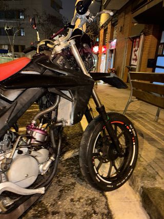 Tiene 13mil kilometros, esta muy bien aceite y filtros hechos. Extras: -tubo Turbo Kit, pasa ITV. -llantas de supermotard con nuematicos en muy buen estado. -tambien lso de enfuro con los tacos recien cambiados -manillar gas gas de color rojo y manguitos tambien rojos.