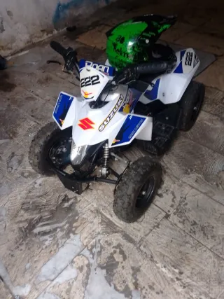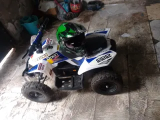 Quad Roan 800w en colores azul y blanco. Batería en buen estado esta en uso la moto no negociable. - Diseño deportivo. - Ruedas todoterreno.