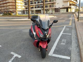 Maxiscooter SYM de 300cc en perfecto estado. Ideal para moverse por la ciudad con comodidad y estilo. - Diseño deportivo y moderno. - Amplio espacio de almacenamiento bajo el asiento. - Parabrisas alto para mayor protección contra el viento.