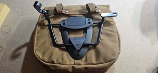 Alforjas de lona y cuero para Royal Enfield Classic 650. Diseño robusto y estilo vintage. - Material: Lona encerada y cuero. - Color: Marrón/Caqui. - Cierre: Hebillas y correas de cuero.
