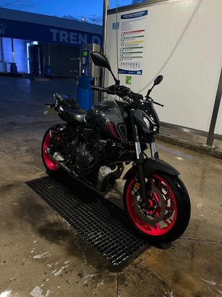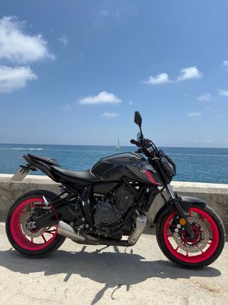 Moto Yamaha MT-07 del año 2022 en perfecto estado y siempre durmiendo en garaje. - Limitada para el A2 - 15.000 kms - Cúpula deportiva. - Porta matrículas corto (entrego el de serie). - Rejilla de ventilación de MT-07 - Revisión recién pasada puesto que acaba de pasar su primera ITV. *El color de las llantas es vinilo, lo que significa que puede volver a su color original (modelo azul claro) en cualquier momento sin presentar desperfectos. Los detalles en rosa son todo pegatinas especiales