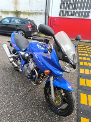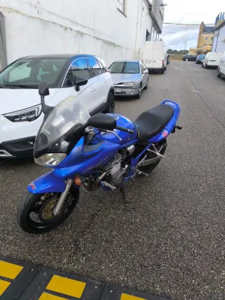 Suzuki Bandit GSF 600 en color azul. Limitada en papeles para A2 Algunos roces por los años. ITV hasta abril de 2027. 40.000 kms en el marcador pero se cambió a las 90.000mil kms. Rueda delantera nueva. Se cambia por scooter de mínimo 125cc para arriba e incluso por Tmax aportando diferencia por mi cuenta. La moto funciona correctamente. No mareantes - Estilo naked. - Modelo GSF 600.