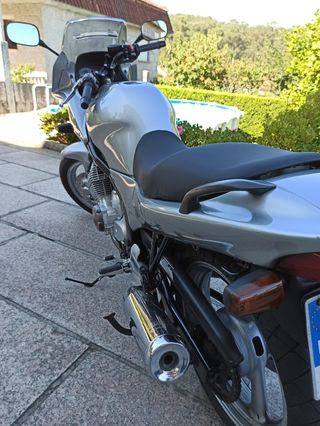 Motor potente (doble carburador), fiable (Nada de electronica, todo mecanica) y de poco consumo para lo que anda (media 3L/100 km) Ideal para carnet A2 Escape homologado y con muy buen sonido Mantenimientos al dia La tuve durante dos años y la vendo por que ya paso al siguiente carnet Tuvo una caida en parado y se daño el deposito y el cajon de la moto por eso el precio tan reducido, pero circula perfectamente y paso la itv sin problema despues Cuenta RPM no funcion Venta entre particulares. La moto se entrega en su estado actual, con ITV en vigor, vista y probada por el comprador, sin garantía ni responsabilidad por averías futuras