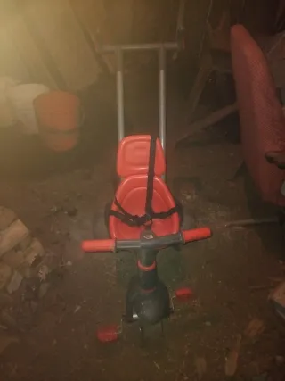 Triciclo infantil de color rojo, perfecto para los más pequeños. - Asiento ergonómico. - Cinturón de seguridad. - Manillar con puños de goma.