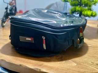 Bolsa GIVI imantado para deposito de moto. Bolsillo frontal transparente y resistente a la lluvia. Se puede expandir con cremalleras para almacenar mas.