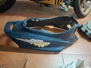 Carenado para Yamaha Axis Plus de 50cc. Pieza de plástico en color azul oscuro con detalles gráficos.50€ Pico delantero Yamaha axis plus 60€ 2 piezas manillar 50€ - Diseño específico para Yamaha Axis Plus 50cc. - Logotipo AXIS PLUS visible en el lateral.