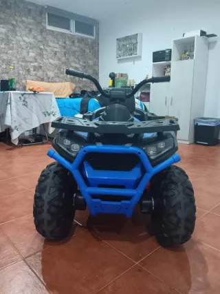 Quad infantil modelo 900 Desert en llamativo color azul. Diseñado para la diversión al aire libre. - Asiento cómodo y respaldo. - Ruedas todoterreno de gran tamaño. - Manillar con puños antideslizantes. - Parrillas delantera y trasera.