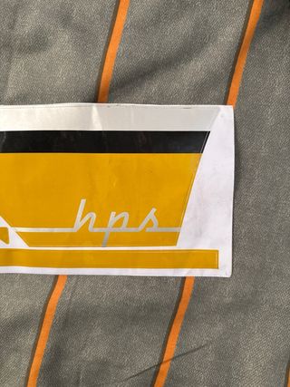 Vinilo decorativo para moto HP Mondial 125. Diseño con detalles en amarillo, negro y blanco. - Incluye varias piezas para personalizar la moto. - Diseño con el logo 'hps' en plateado.
