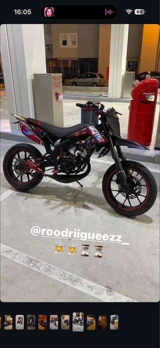 la moto rieju mrt pro 2024 costo en su día 5.500€ hasta 2027 no hay que pasar itv doy todas las piezas de casa menos el motor lo que es el bloque de motor el cilindro de 49 encendido de casa carburador de casa y eso si lo doy, luego lleva un preparado con un tpr 86, rotor bidalot, carburador 32 stage 6, embragues new freen, sexta top, bomba de agua top, el motor full prepa preparado pero también para uso del día a día echo por ibáñez 2350€ o asi y luego extras como vinilos de alien arts manillar krm con las torretas puño rápido con puños domino blancos escape ibáñez artesanal 85/95 etc... Se vende o se cambia