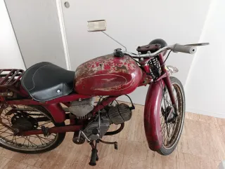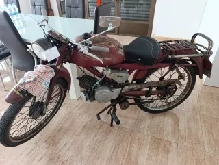 Moto Guzzi Cardelino clásica, un modelo icónico, restaurada y documentada, conservada con pintura original, va perfecta - Color rojo descolorido. - Asiento negro. - Portaequipajes trasero. - Moto clásica, antigua, conservada, colección.