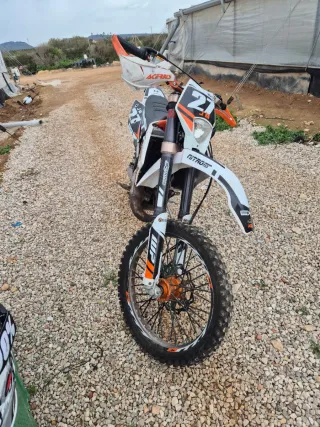 Moto de enduro KTM 125cc de dos tiempos. Ideal para caminos y senderos.Itv recien pasada cubiertas nuevas,latiguillos nuevos pastillas piston recien hecho,filtro,etc mucho dinero invertido,no mareantes solo gente verdaderamente interesada podria aceptar cambio por algun bmw que me interese gracias. - Cilindrada: 125cc - Motor: 2 tiempos - Transmisión: Manual