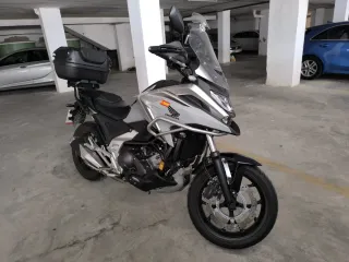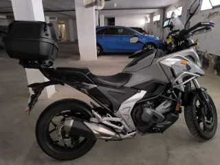 Moto Honda NC750X en estilo adventure. Ideal para rutas y desplazamientos. - Moto de segunda mano. - Color gris plata. - Incluye maleta trasera.
