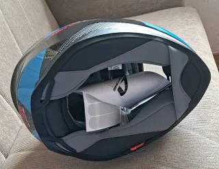 Casco de moto Astone GT 900 en colores negro, azul y rojo. Incluye funda. - Diseño deportivo. - Sin uso.