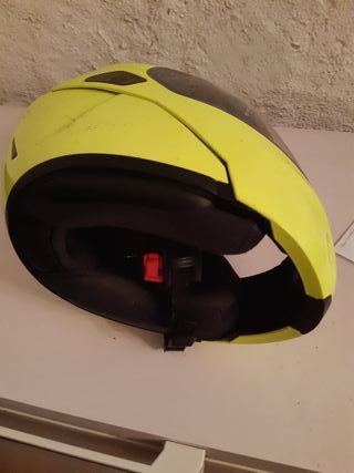 Casco de moto de la marca HJC en color amarillo. - Diseño deportivo. - Visera oscura.