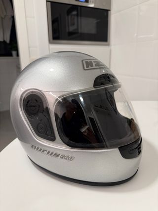 Casco Integral de moto NZi Eurus 600 en color plata, en excelente estado. Incluye funda protectora. - Modelo: Eurus 600 - Marca: NZi - Color: Plata - Talla L (52-53) Ideal para niños - Material: Ultra hard Polycarbonate - Incluye funda