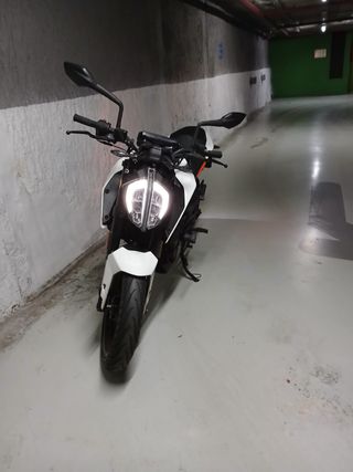 VENDO KTM DUKE POR CAMBIO DE CILINDRADA! URGE VENTA! La moto me la compré hace casi 1 año con 27.000km, solo la he usado para ir al trabajo y moverme por el pueblo, pero quiero subir de cilindrada para poder ir de ruta, aprender a hacer curvas, etc. La moto está perfecta, solo tiene un arañazo en el asiento. Le toca revisión en 200km (el precio de la revisión se rebajará del precio total) Extras: - Manetas freno/embrague color cobrizo. - Escape mivv - Supresor cat. 2 llaves ITV HASTA 2027 Se entrega con tubo de serie (si asi lo prefiere el comprador) sino se entrega a parte. NO LEER: #ktm, #duke, #125, #yamaha, #a1, #naked,