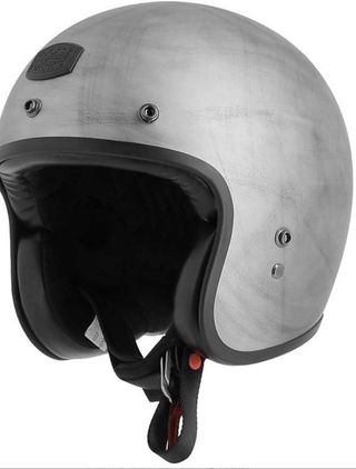 Casco estilo vintage con un acabado plateado desgastado. Con visera quita y pon transparente ( extra comprado a parte) y la Visera tipo gorra clasica - Diseño clásico. - Cierre de seguridad. - Interior cómodo. - Nuevo solo utilizado 2 veces me va pequeño Talla M 58