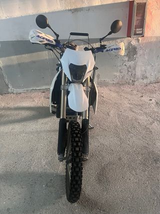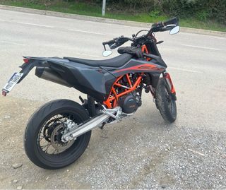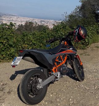 Moto KTM 690 SMC R del año 2022 con 17.000 km. Revisión de 15k pasada, en perfectas condiciones. - Estilo supermotard. - 74cv pero Limitable para carnet A2 - lleva tubo Austin Racing con db killer desmontable, suena una barbaridad de bien. (incluyo el tubo de serie a parte para ITVs y lo que haga falta) - Retrovisores bar-end - Portamatrículas cambiado (a uno deportivo) - batería recién cambiada y neumáticos casi nuevos también. Si quieres mas fotos mándame un mensaje. Es un motón pero me quiero comprar algo mas para viajes :)