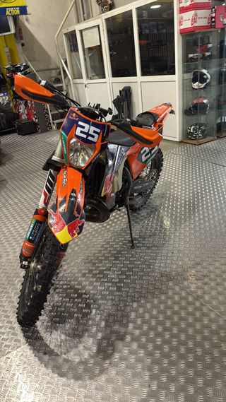 Vendo KTM 300 EXC TPI 2018 en muy buen estado. Moto muy cuidada y mantenida al día. La vendo únicamente para cambiar al modelo de este año. Extras y mantenimiento: • Kit de arrastre nuevo con plato de 52 dientes, que le da muchos más bajos y mejor respuesta en zonas técnicas. • Pistón hecho a las 190 horas. • Manetas articuladas nuevas. • Neumáticos con muy poco uso. • Cámara reforzada de 4 mm. • Todos los protectores instalados. • Cambios de aceite y mantenimiento siempre al día. No ha hecho carreras. Siempre ha funcionado perfecta.