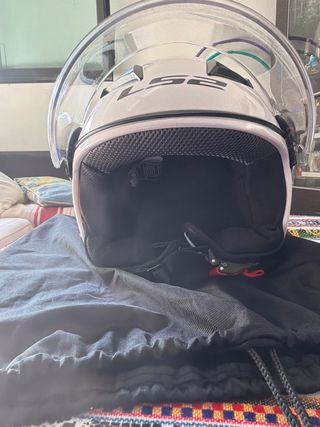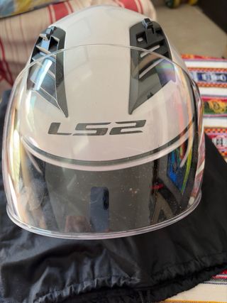 Casco de moto LS2 en color blanco, completamente nuevo. - Diseño moderno y seguro. - Visera transparente incluida. - Cierre de seguridad.