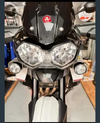 Moto de aventura Triumph con un diseño llamativo. 38.000 KM - Combinación de colores negro y blanco. - Estilo de moto de aventura.