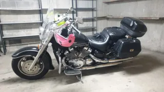 Motocicleta Yamaha Royal Star 1300 en color negro. - Asiento doble de cuero. - Parabrisas alto. - Maletas laterales y superior. - Motor V-Twin. - Itv, seguro y revisiones al dia. - Defensas delanteras originales. - 57.900 km
