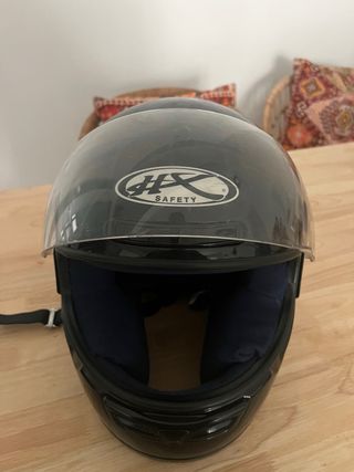 Casco de moto de la marca HX Safety en color negro y talla XS. Tiene algunas marcas, pero el interior y la visera están muy bien conservados. Cierre en click.