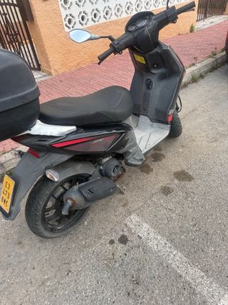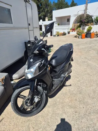 Moto scooter de color negro, ideal para desplazamientos urbanos. NO MAREANTES - Diseño moderno y deportivo. - Ruedas de aleación. - Espejos retrovisores. - Faro delantero 4 tiempos Sin itv la pasa sin problema 9780km 49cc