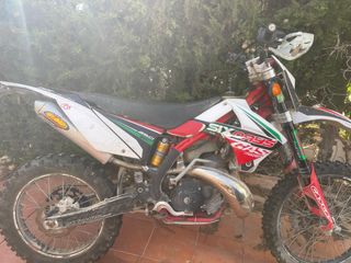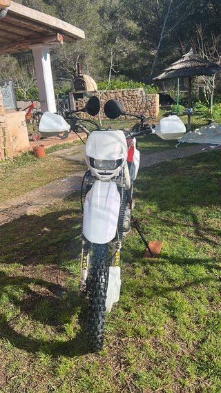 **SIN MOTOR** Kit de ITV completo, retrovisores de manillar, escape de serie y FMF (ambos linea completa), 2 o 3 kits de plásticos, caballete para levantarla y poder cambiar las ruedas, la pata larga para cuando lleve las ruedas de enduro (si no queda muy inclinada), ruedas de enduro y de Supermotard (SM homologadas ya que és la SIX DAYS)