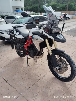 Moto BMW F800 GS en muy buen estado. Tiene 28.800 km Revisión recién hecha. Cubiertas nuevas. Transmisión nueva. Aceite motor y filtro aceite nuevo. Escape Arrow y doy escape original. Tengo las maletas de viaje,2 laterales metálicas y la trasera negra.Entrego cupula más baja original. - Color blanco y negro. - Chasis tubular rojo. - Parabrisas alto. - Neumáticos mixtos. -Escape Arrow.