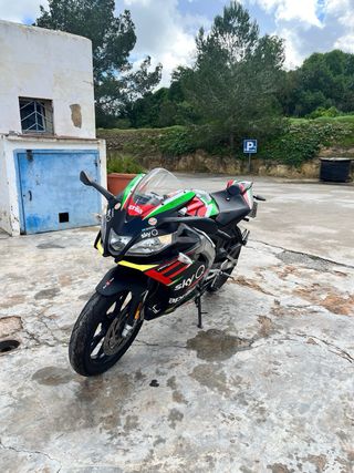 Moto deportiva Aprilia RS 125 con diseño GP Replica 2019. - Matriculación 2022 - 22387km - Motor de 125cc. - Cambio manual. - Quickshifter - Colin mono plaza incluido - Se puede añadir manetas nuevas homologadas (90€) - Todas las revisiones/reparaciones en casa oficial - Consultar imperfectos - Solicitar mas fotos si - Neumáticos nuevos diablo rosso con apenas 1000km - Kit de arrastre cambiado a los 15000km - La ITV se le pasa este año. - Se puede negociar el precio - Papeleo a cargo del comprador - Juego de llaves - Manuales originales - Asiento recien tapizado