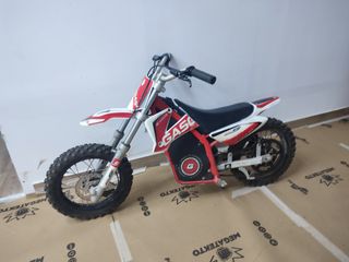 Mini moto estilo pocket bike con un diseño llamativo cubierto de pegatinas. - Asiento negro. - Ruedas todoterreno. - Manillar negro. - funciona bien. - la entrego con su cargador original. - perfecto para iniciarse. - NO NEGOCIABLE,SI HACÉIS OFERTAS NO CONTESTO.
