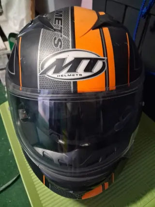 Casco de moto MT con diseño deportivo y aerodinámico. - Color negro, naranja y gris. - Visera transparente. - Interior cómodo.