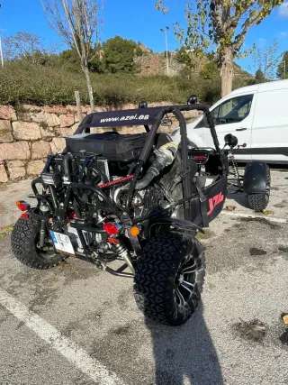 Buggy de estilo todoterreno, ideal para aventuras. Motor 1100 cc 65 cv corre 120 kmh Puedes ir por autovía y autopista es muy divertido el mas fuerte de potencia pocos km 9 mil itv asta febrero 2028 con todo los mantenimientos recién - Estructura robusta. - Ruedas de gran tamaño para todo tipo de terrenos. - Diseño deportivo.