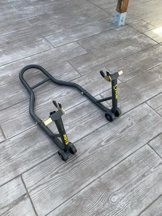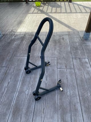 Caballete para moto en color negro. - Estructura metálica. - Ruedas para fácil movilidad. - Soporte ajustable.