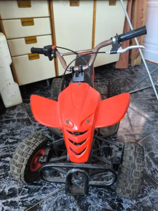 Mini quad infantil de color naranja, perfecto para los más pequeños. Diseñado para diversión todoterreno. - Asiento cómodo. - Ruedas todoterreno. 50cc fuie restaurado por completó Preguntar