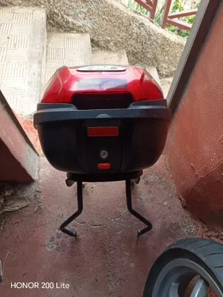 Maleta de gran capacidad para moto, ideal para scooters. - Diseño moderno en dos tonos. - Cierre seguro con llave.
