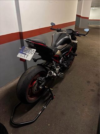Moto Yamaha MT09 en color negro. - Estilo naked. - Transmisión manual. - 3modos de conducción -solo carnet A - Revisiones al día -Km: 45500 -Siempre en garaje -NO SE ACEPTO CAMBIOS