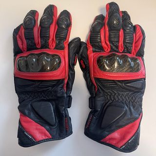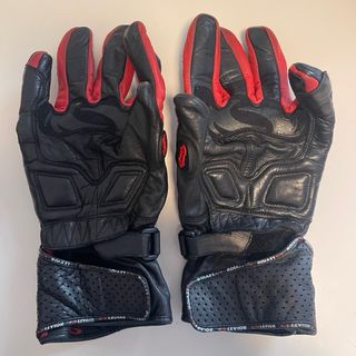 Guantes de cuero rojo y negro. Con protectores en nudillos de poliuretano. Talla XS.