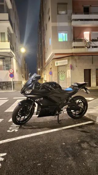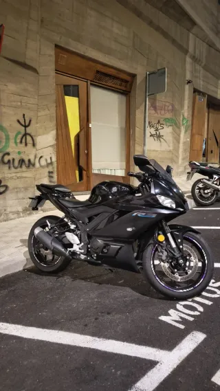Se vende Yamaha R3 del año 2023, color negro. Perfecta como primera moto o para quien quiera una deportiva ligera, ágil y muy divertida. 🔧 13.000 km ✔ Todas las revisiones al día ✔ Uso diario y alguna ruta esporádica ✔ Guardada en garaje y ocasionalmente en calle La moto está en muy buen estado general. Tiene un par de raspones de una caída en parado (estéticos, no estructurales). Extras incluidos: - Manetas negras - Contrapesos negros - Portamatrículas corto - Intermitentes secuenciales Entrego algunas piezas originales. Las pegatinas lilas se pueden retirar fácilmente si se prefiere dejarla completamente negra. Moto cuidada.