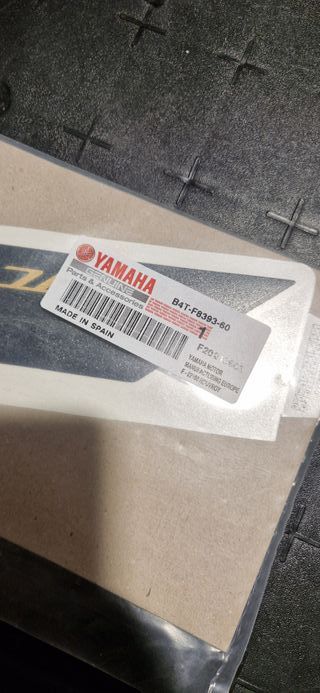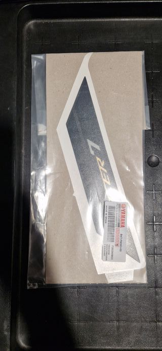 Pegatina de repuesto para la tapa lateral de la Yamaha Tracer 7. Referencia: B4TF839360 - Diseño en negro y dorado. - Logo de Yamaha.