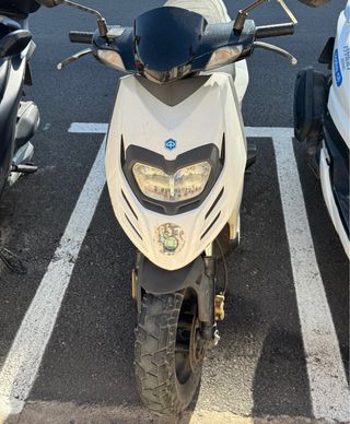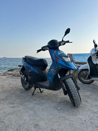 Moto de 49cc en color azul con detalles gráficos. - Diseño deportivo. - Asiento negro. tiene unos 35mil km pero va de lujo desde que la tengo no me a dado ni un solo problema y siempre q dormido en garaje, va toda de serie menos el escape que es un tecnigas homologado. cualquier duda escribirme precio algo negociable