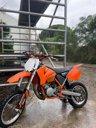 Moto muy cuidada con solo 120h. Muchos extras de competición: Escape fmf titanio completo Manillar pro taper Maneras reversibles ktm Kit piezas aluminio motor y tapa embrague ktm Amortiguador trasero wp racing doble regulación repasado de este año Suspensión delantera preparada este año Ruedas midas al 95% Disco freno galfer sobredimensionado Llantas y bujes reforzados talon Itv al dia Se entrega con otro juego de llantas, juego de plásticos nuevos, kit itv y escape original a estrenar ITV RECIEN PASADA